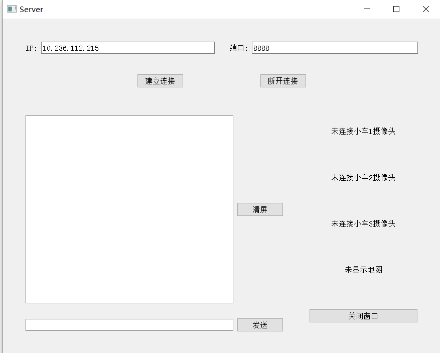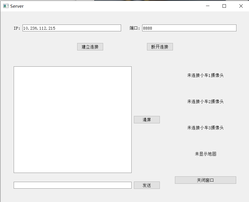 出于多车的考量,有多个客户端,每个小车有一个客户端,地图再来一个客户端,一共四个客户端,地图的传输和小车摄像头图像传输类似,都是以二进制的格式进行传输,然后在windows端进行解码,所以使用一个python程序监听多个端口来实现这一需求