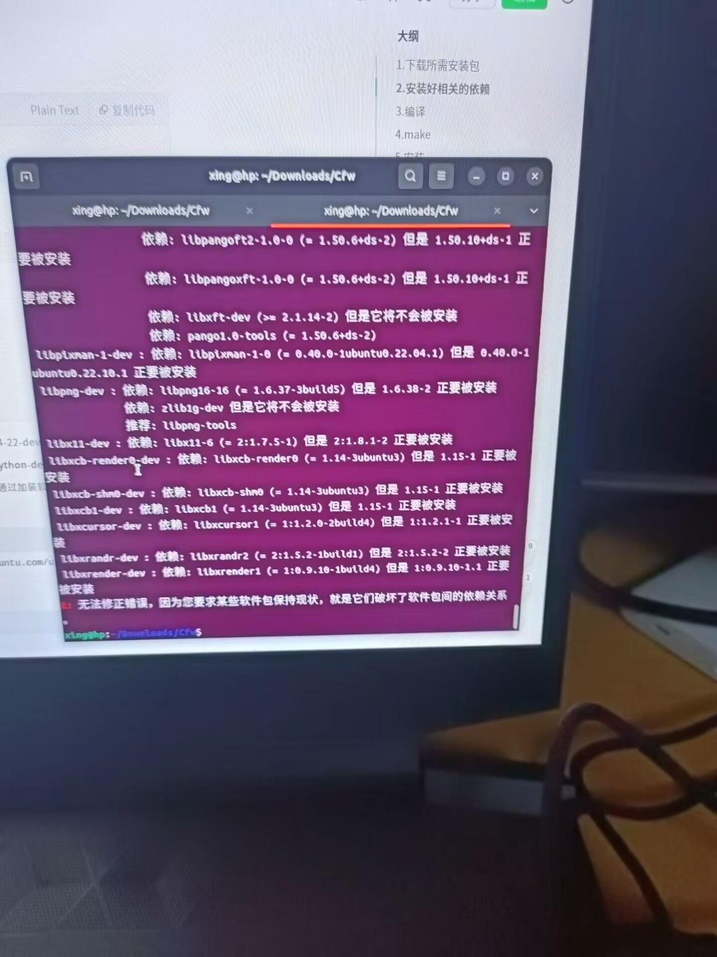 1.第一个实际是Ubuntu版本不对导致的问题,原先安装的22.10
