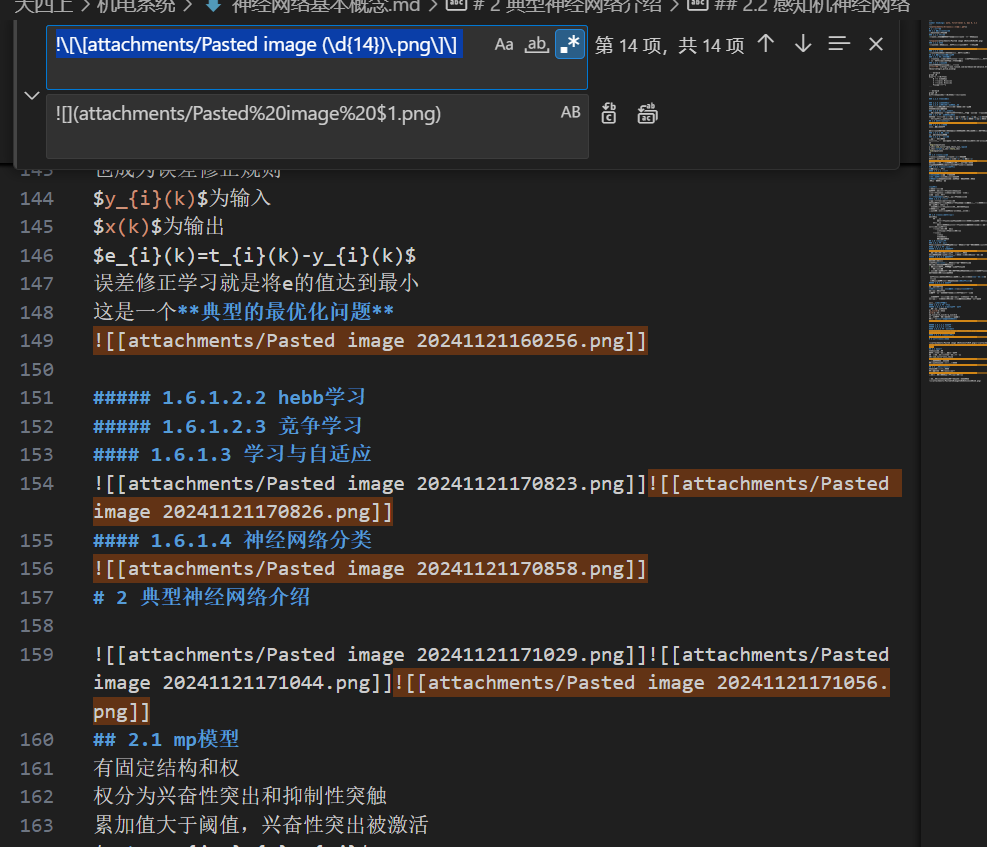 !\[\[和\]\]:匹配图片的 Markdown 链接格式。attachments/Pasted image:匹配图片路径的前缀。(\d{14}):匹配图片名称中间的 14 位数字(时间戳)。将