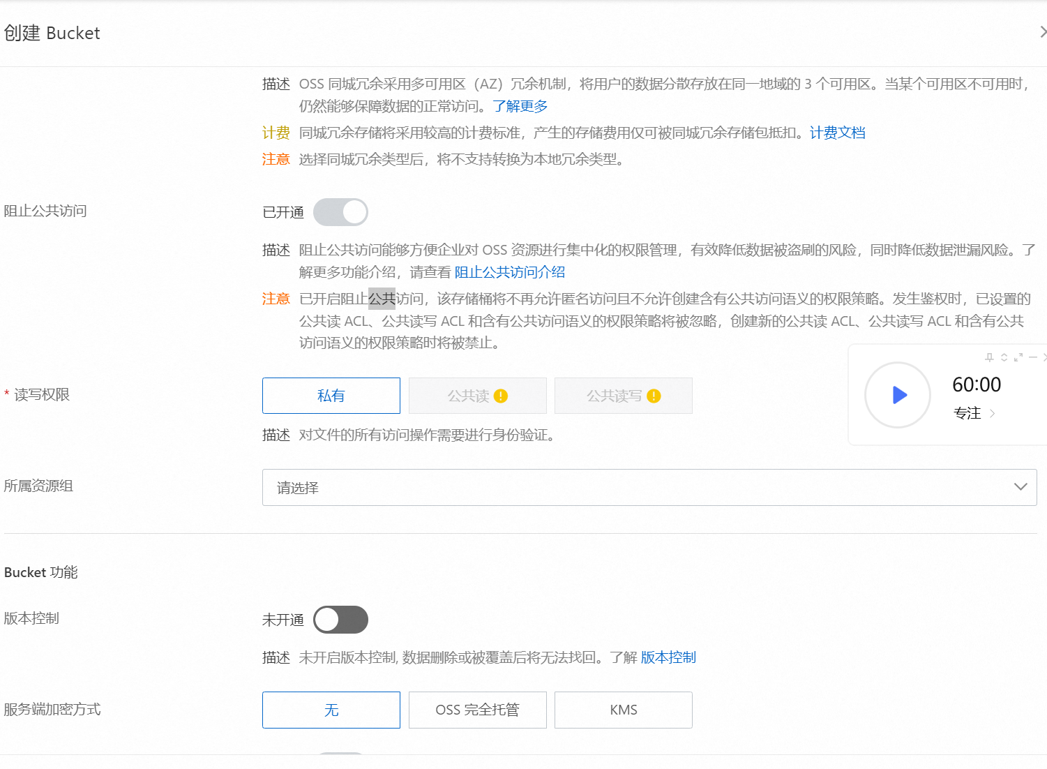 在bucket创建得时候能直接公共读,但是这里不行,需要创建之后再关闭公共
