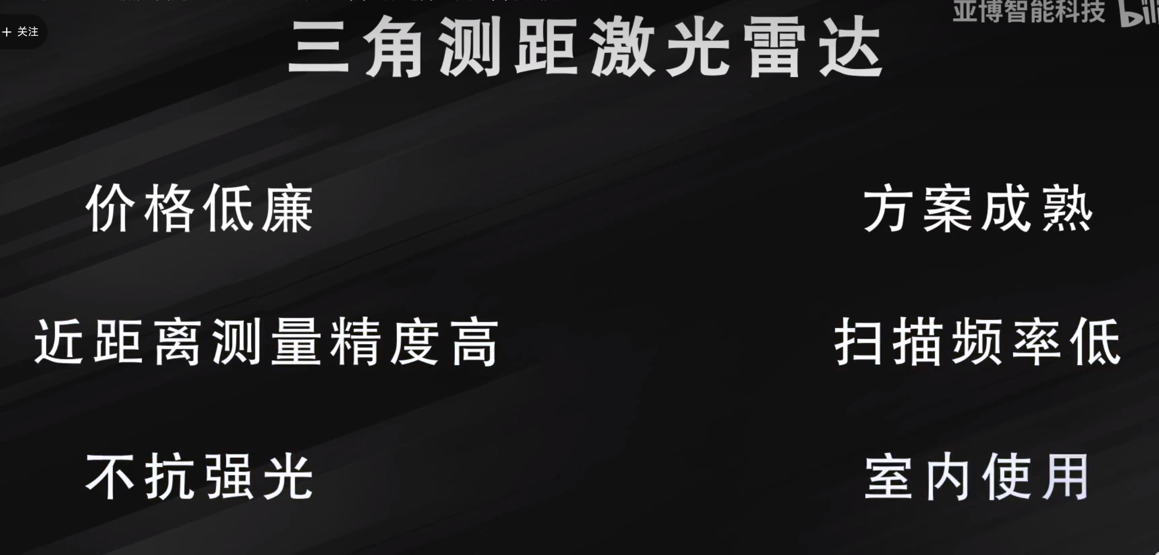 - 从测量距离来看,三三角测距的距离短,一般是20m左右,而tof的距离能到30m以上