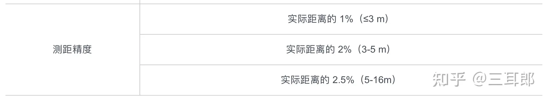 - 精度:三角测距对于近距离的精度很高,如下图所示